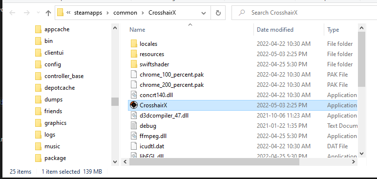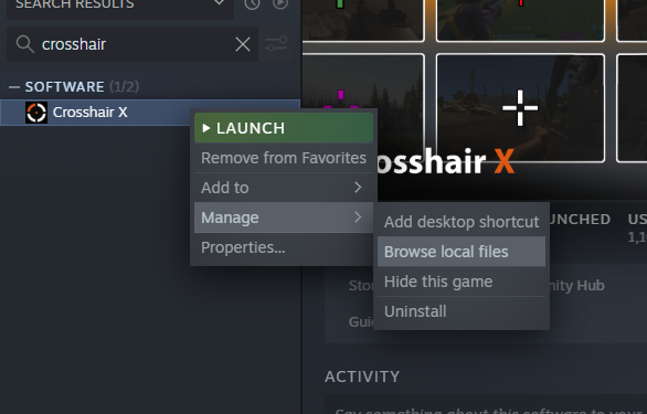 Right click on Crosshair X, and under Manage press Browse Local Files.